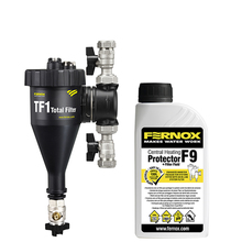 Set complet comprenant le filtre TF1 TOTAL et le produit Protector 500 ml. Un filtre de qualité utilisant les techniques hydrocyclonique et magnétique pour éliminer les contaminants de l'installation de chauffage. Le résultat de longues années de recherche et d'innovation de Fernox. Très simple à placer et utiliser. Température maximale 100°C. Pression de fonctionnement maximale 3 bar. Débit maximum 50 L/min. Connexion 3/4" taraudé.